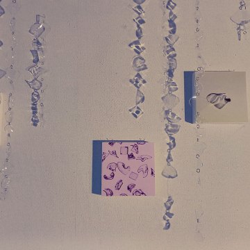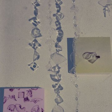 この作品は大きく分けて、写真の作品とイラストの作品に分けられる。写真の作品に使用したのはプラバンである。プラバンはトースターで加熱をすると収縮し固まる材質だが、写真に使用したのは、プラバンを加熱する時に十分に収縮する前に取り出し、いびつな形のまま固めたものだ。