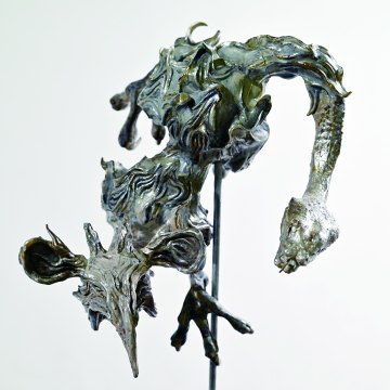 検討を踏まえ、「漠然とした不安」や「正体不明の恐怖」を象徴する妖怪として鵺を選定し、伝承にみられる複合的な特徴を参照しつつ、鳥の要素を強めた造形へ再構成した 3D モデルを制作した。完成したモデルを基に、写実的なレンダリングと絵画的処理を組み合わせた平面作品、そして 3D プリンターによる立体作品を制作し、背景表現やライティングを含む複数の視覚的アプローチを試みた。