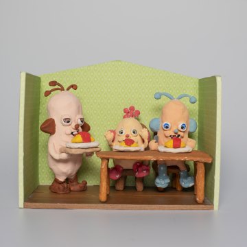 ジオラマは、ハピパルスが住む場所や、どんな風に過ごしているかの空間・土台を表現します。写真は、ジオラマの中の一場面を切り取り、ハピパルスの生活の時間の流れやハピパルスの感情などのストーリーを表現します。