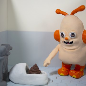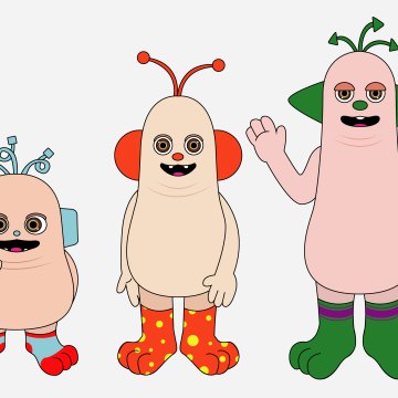 ハピパルスの姿は、「幸せ・楽しい」から連想されるような要素(カラフル、笑顔、丸いフォルム)とユニークで記憶に残る要素(おしり丸出し、目立つ鼻、生々しさ)を取り入れてデザインしました。