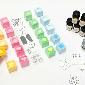 最終的には、香りを嗅ぐことを通して、香りと模様のイメージを結びつけて他者とその感じ方や結びつけ方を共有する『くんくんクンクン』というボードゲームが完成しました。